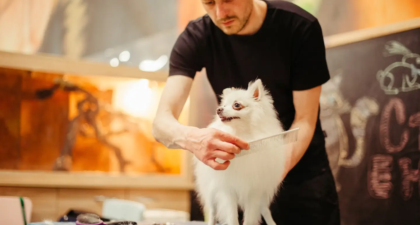 Cleaning and shampooing your pet to keep their coat fresh.